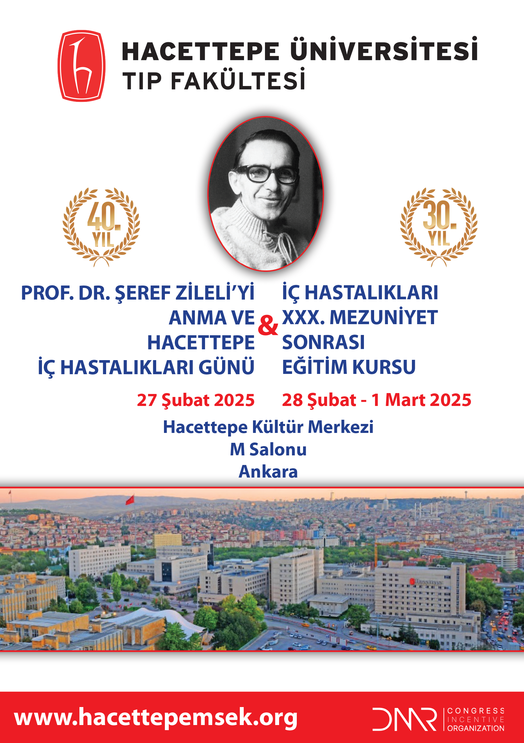 Hacettepe İç Hastalıkları, Kardiyoloji, Göğüs Hastalıkları ve Enfeksiyon Hastalıkları Anabilim Dalları olarak düzenlediğimiz 31. İç Hastalıkları Mezuniyet Sonrası Eğitim Kursu’nu, 10 – 12 Nisan 2026 tarihleri arasında Patalya Hotel, Kızılcahamam’da gerçekleştireceğiz. Toplantımız, koronavirüs önlemleri kapsamında fiziki mesafe göz önünde bulundurularak, kültür merkezimizdeki en büyük salon olan M salonunda yapılacaktır.